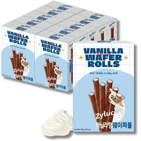 Zyluc wafer rolls are cholesterol-free and contain zero trans fat, offering clean indulgence you can feel good about. Their sturdy rolled shape keeps them intact and mess-free, whether you’re enjoying them on their own, pairing them with coffee, or using them as a topping for desserts like ice cream, bingsu, or milkshakes.